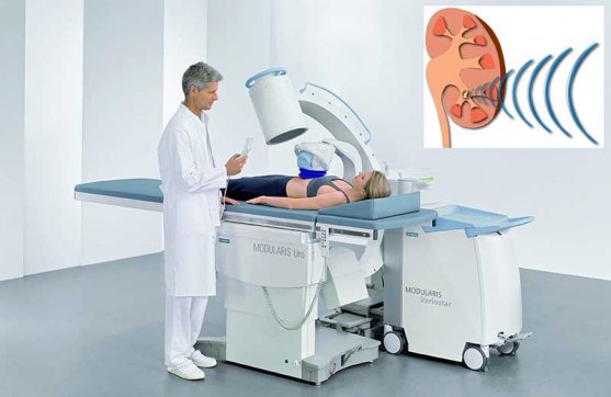 Дистанційна ударно-хвильова літотрипсія. Це метод генерації акустичної хвилі за межами тіла пацієнта та фокусування її на камінь у нирці або сечоводі. Тіло пацієнта в цьому випадку виступає в ролі рідини адже на 80 % складається з води , воно проводить акустичну хвилю через себе, а конкремент який має кристалічну решітку поглинає енергію хвилі. Процедура переважно проводиться без наркозу та амбулаторно, а відходження фрагментів може тривати до 2-х тижнів.